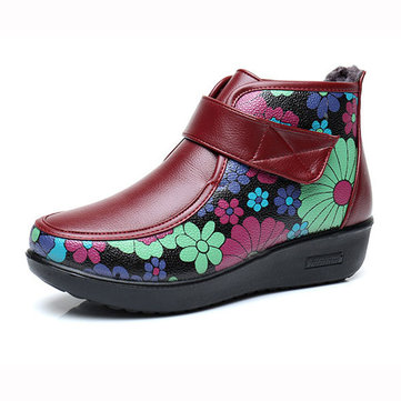 Bottes Femme Fleur en cuir d'hiver Gardez les bottes de cheville extérieures chaudes