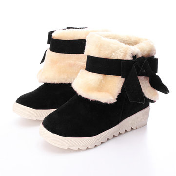 Femmes bowknot doublées de fausse fourrure confort appartements de bottines de neige chaude