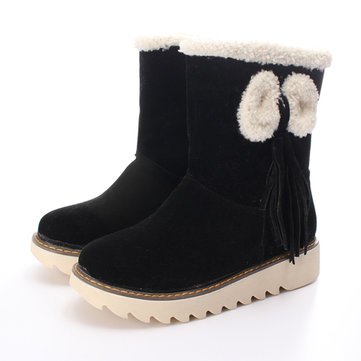 Hiver femmes mi-mollet bottes de neige de fourrure de mode de doublure coton suède bas talon chaussures