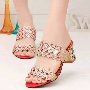 Mailles creuses sur la cheville bout pointu talon épais glissière sandales