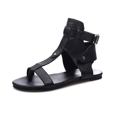 Femmes décontractées Summer Beach Outdoor Leather Flat Sandals