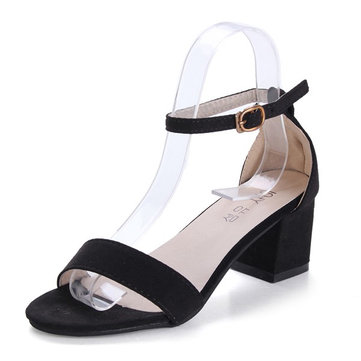 Les femmes estivale décontractée daim extérieur boucle noire sandales à talons hauts chaussures de plage