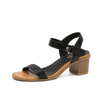 Les femmes d'été en cuir de plage en plein air vintage rétro peep toe boucle chunky sandales à talons