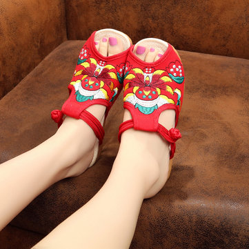Women& Bohemia& Sandals& Clip& Toe& Flat Broderie Casual Beach Slipper