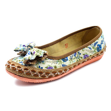 Socofy Original Handmade Flower Slip On Retro Sandals