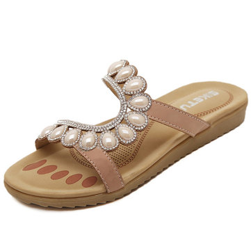 Bohemia Bead Peep Toe Sandales plates décontractées