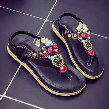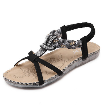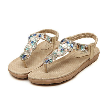 Rhinestone Bohemia Slip On Sandals élastiques