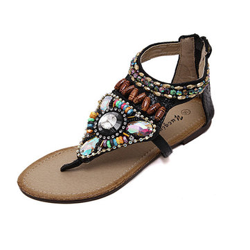 Cristal perles bohême pince colorée orteil strappy glisser sur la plage sandales plates
