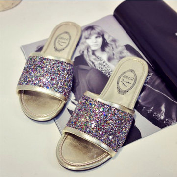 Femme cristal Sandales transparent flops string plat plage pantoufle chaussures plates