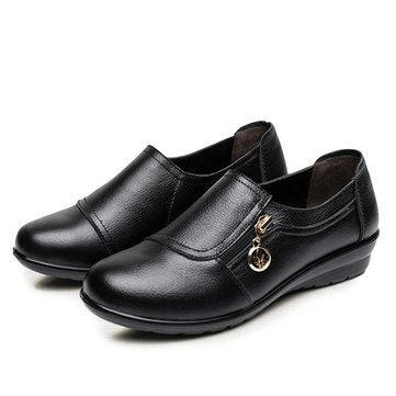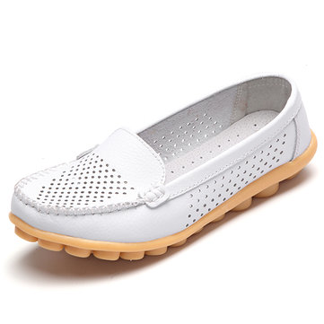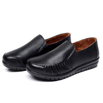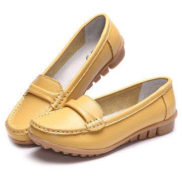 Chaussures en cuir pour femmes low top décontracté slip doux à l'extérieur sur flat loafers