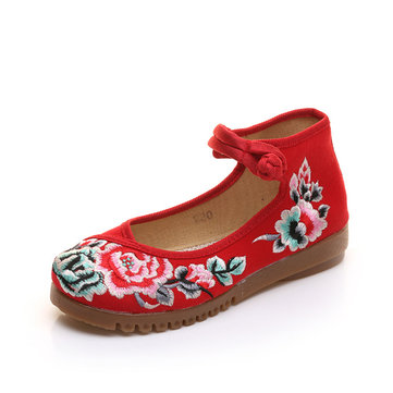 Mary janes fleur brodée chinoise décontractée boucle plate chaussures
