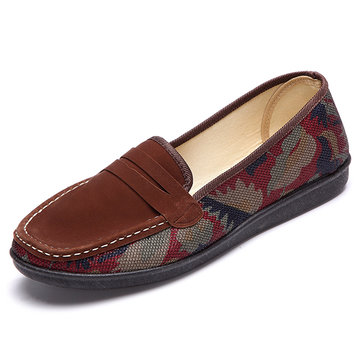 Bohemia coloridos vintage flat stripe slip sur mocassins pour femme