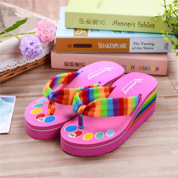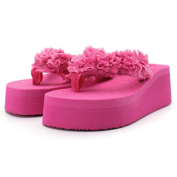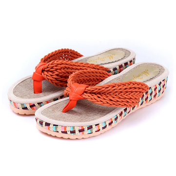 Les femmes flip flops été sandales compensées tricotés pantoufles plateforme de plage