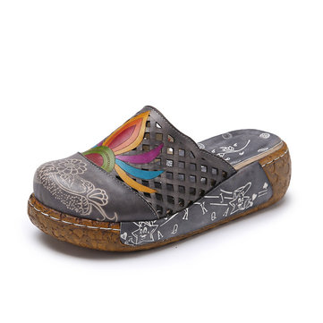 SOCOFY& Flower& Colorful& Hollow& Out& Soft Slip On Slippers