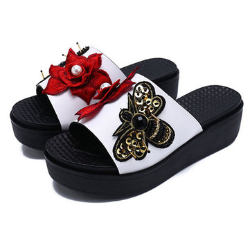 SOCOFY& Cuir& évasé& Décoration& florale& Pantoufles décontractées respirantes