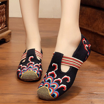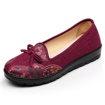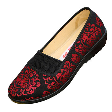 Han chaussures chinois brodé feuillet fleur sur semelle chaussures plates souples
