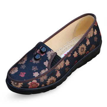 Imprimé floral dérapant sur les chaussures plates semelle rétro appartements respirant doux