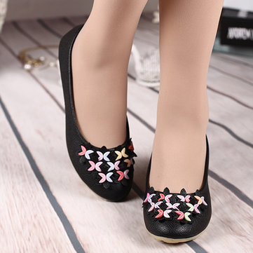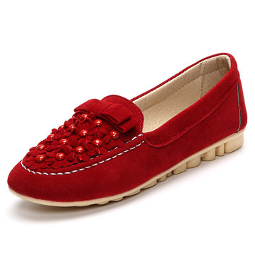 Fleur de couleur pure bowknot perles plates chaussures à semelle souple