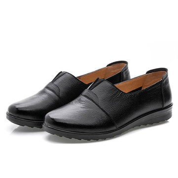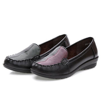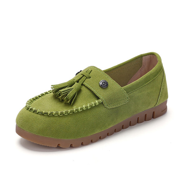 Décontracté en cuir souple bout rond orteil sur plat mocassins