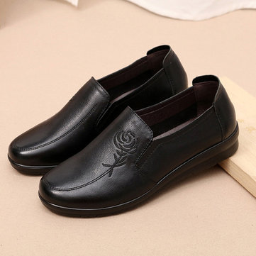 Chaussures femmes fleurs glissent sur la mode en cuir mocassins plats doux