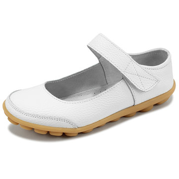 Grandes femmes de taille en cuir souple respirant chaussures plates confortables boucle appartements à bout rond