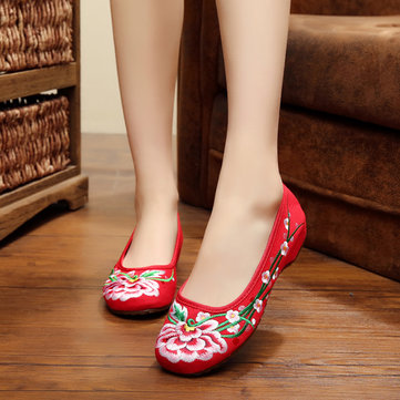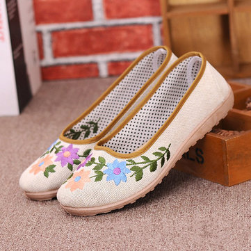 Toile maille respirante fleurs élastiques plats brodés vent national chaussures