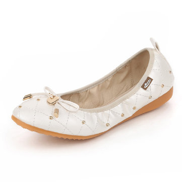 Butterflyknot en cuir métallique évider chaussures plates confortables mous