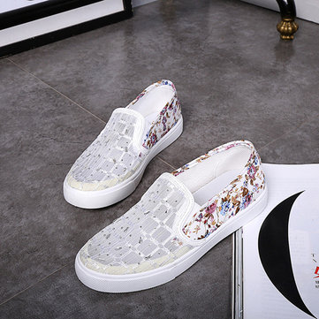 Dentelle respirant creux à imprimé floral glissement sur des chaussures plates