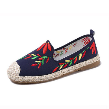 Fleur de style chinois brodé mocassins plats lin seul slip-ons de douces
