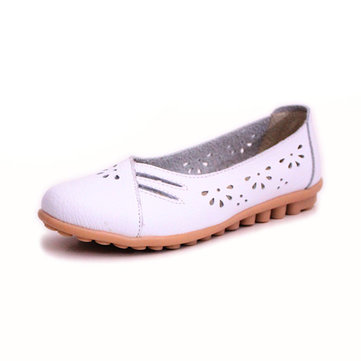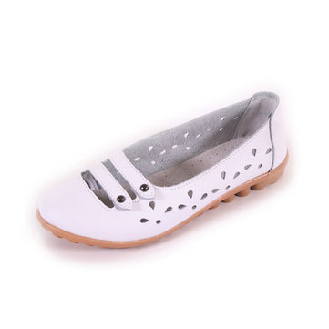 Chaussures plates femmes cuir confortable été en plein air respirable casual douce creusent chaussures