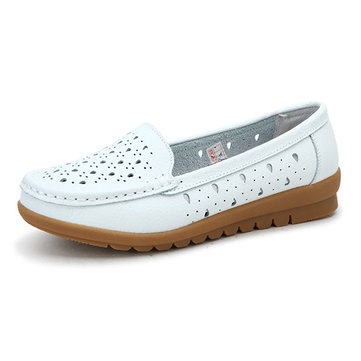 Femmes Mocassins Chaussures d'été de Plein Air Confortables Souples Décontractées Creuses Plates en Cuir