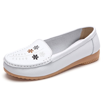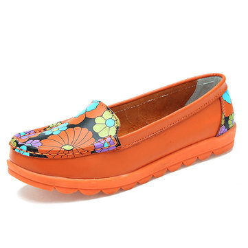 Les femmes mode casual confortable cuir fleur respirant doux bout rond chaussures loafer plat