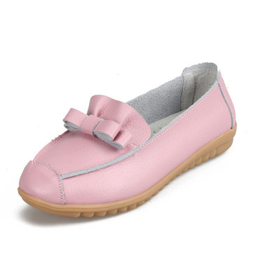Ronde femmes cuir décontractée couleur pur mocassins souples confortables orteil glisser sur les chaussures plates