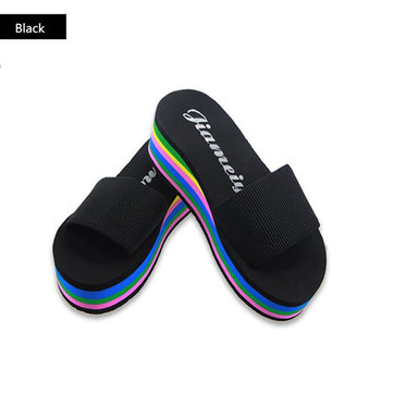 Femmes flip flops occasionnels mousse sandales de plage arc-en-haute plate-forme chaussures coin pantoufle