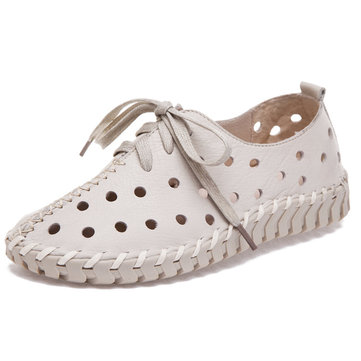 SOCOFY& Cuir& Hollow& Out& Chaussures& à coutures respirantes à lacets Chaussures confortables