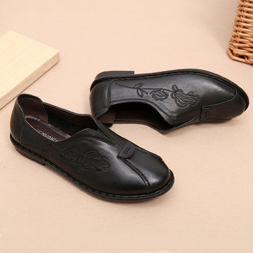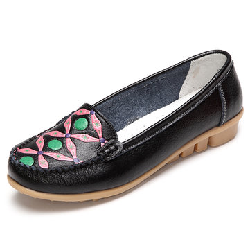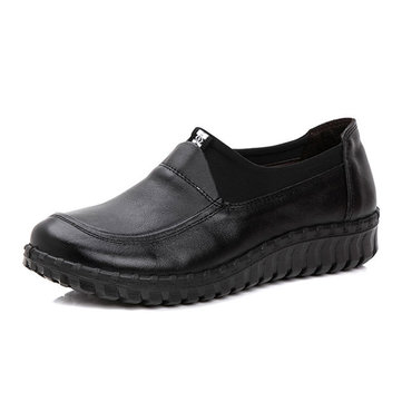 Chaussures en cuir rond orteil femmes décontractées slip sur mocassins en plein air doux plat