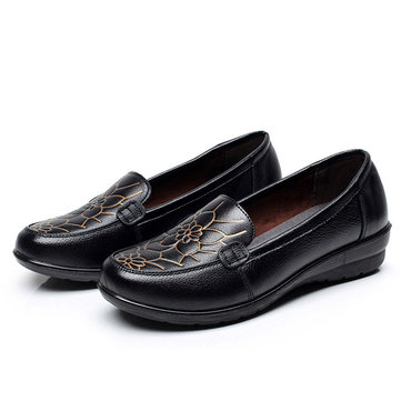 Flats chaussures femmes cuir décontracté slip extérieur sur mocassins doux