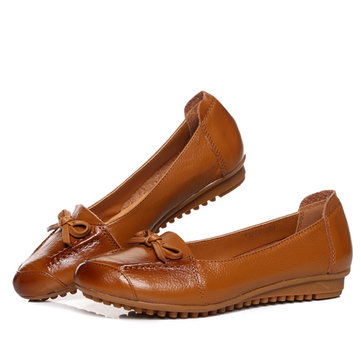Les femmes en cuir mode plat bowknot dérapant en plein air décontracté et confortable sur les chaussures