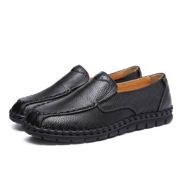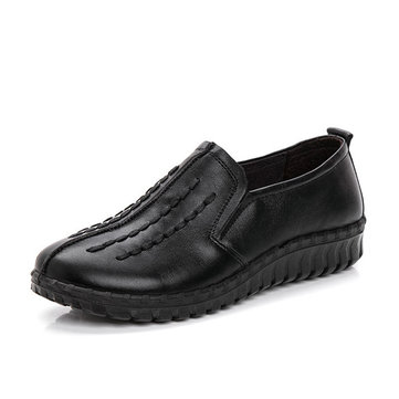 Décontracté couleur pure couture slip en cuir sur les chaussures plates pour les femmes