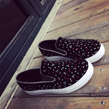 Noir colorul dot perles en daim à enfiler des chaussures plates