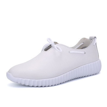 Dentelle casual up cuir souple couleur pur respirant loafers plat