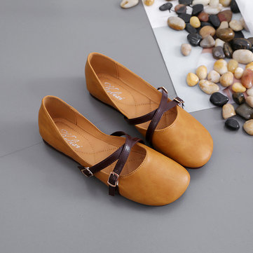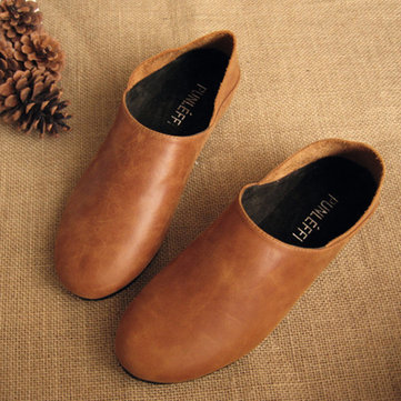 Hand-made rétro en cuir doux rond orteil slip sur les appartements pour les femmes