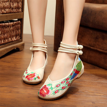 Chaussures Plates à Boucle Ornées de Broderie Chinoise de Paon Flokloriques