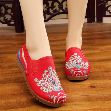 Peacock Chinoise Brodé Casual Slip On Flat Loafers