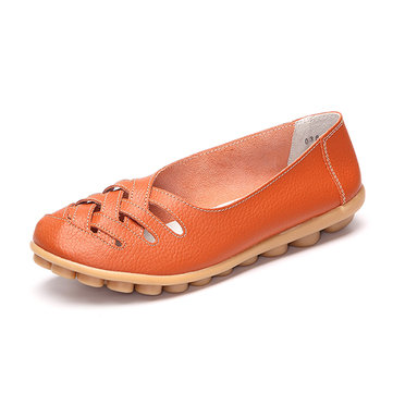 Chaussures de Grande Creusées Taille en Cuir Moccasin Casual Chaussures Plates