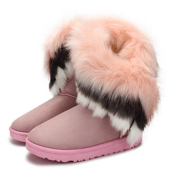 Hiver femmes garder chaud neige bottes fourrure doublure suède occasionnels