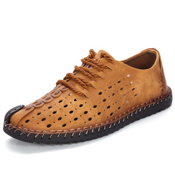 Hommes& Breathable& Hollow& Out& Casual& Leather Casual Oxfords Flats