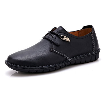 Hommes Casual Flats Cuir de Plein Air en Dentelle Souple de Tête Ronde Oxfords