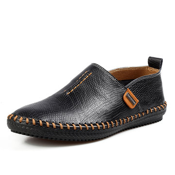 Hommes& en& cuir& véritable& Soft& Slip On Loafers Casual Shoes