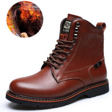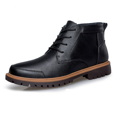 Hommes Bottes de Mode Hautes Extérieures Décontractées en Cuir Doublure de Laine